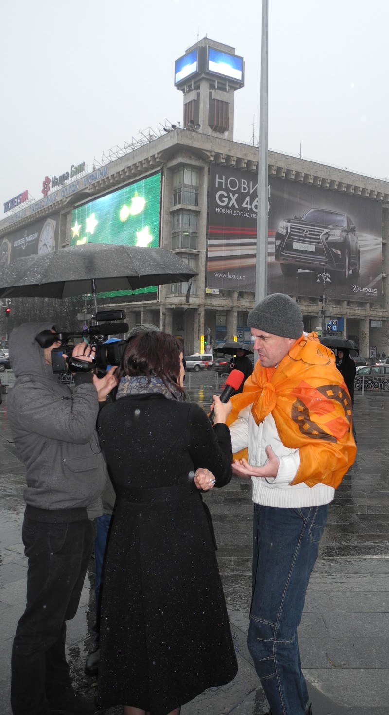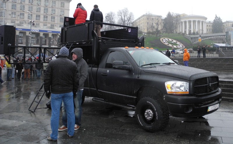 Въезды на сам Майдан заблокированы милицейскими машинами. Еще с ночи удалось прорваться прямо к Ёлке БЧЖ с акустической аппаратурой.