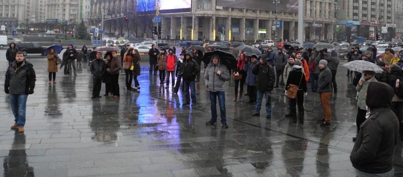 А пока кроме проливного дождя, можно увидеть не толпу, а действительно самых идейных. Например