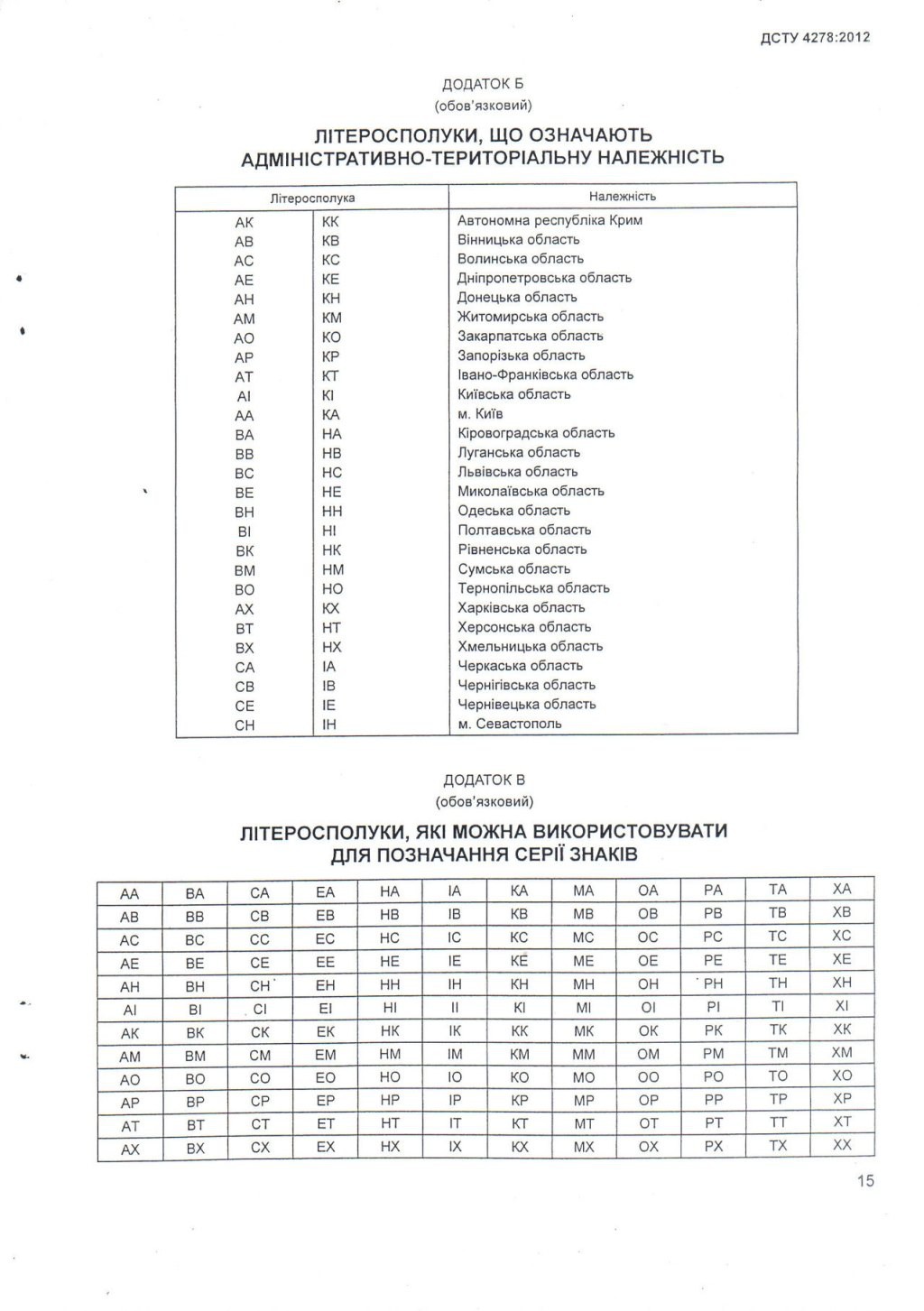 гм... ладно что формат со старыми не сойдется, НО! как первые или\и единственные большие (были номера например "в 1234 КІ") KI - "и" украинское было Киев КН - было Киев (дАнецкие примазываюцца) КВ - было Киев КТ - было Киев КМ - было Киев