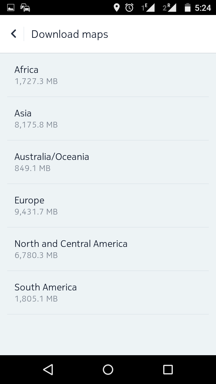 Список карт по континентам (можно загружать как полностью каждый из континентов, так и отдельные страны, а для ряда стран возможна загрузка отдельных регионов, как, например, для США, Великобритании и России):