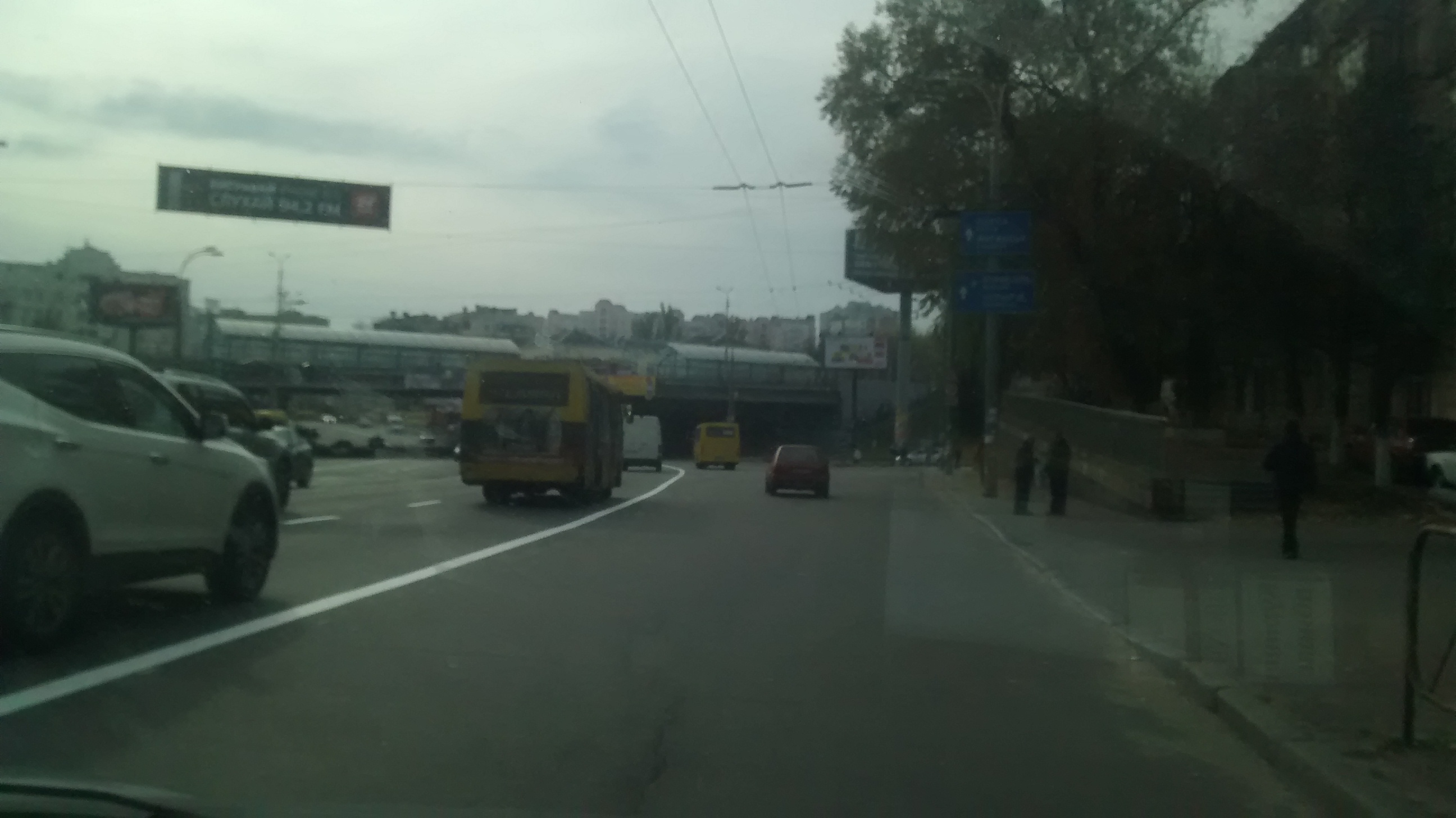 Вчера заснял передвижение рейсового автобуса. От площади ВОВ в сторону Печерского моста, по Дружбы Народов, он даже не пытался ехать в полосе для ОТ.